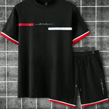 Manfinity homme conjunto casual de verano para hombre con camiseta de manga corta y shorts con impresion de letras
