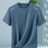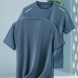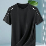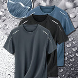 Camiseta deportiva de manga corta, cuello redondo, de malla transpirable y holgada con estiramiento, estilo novio, de tres piezas, para hombre, para verano