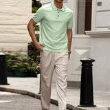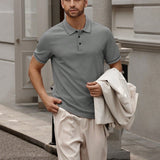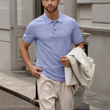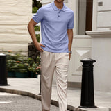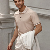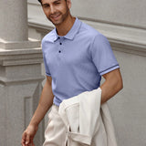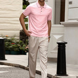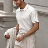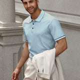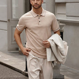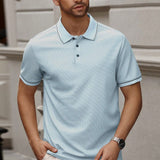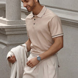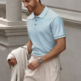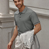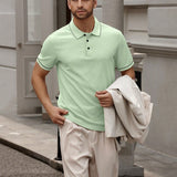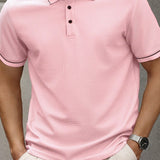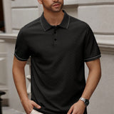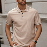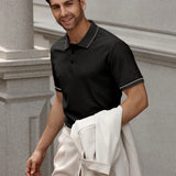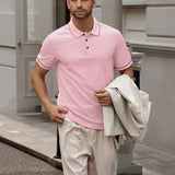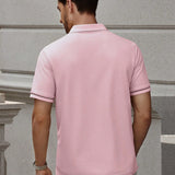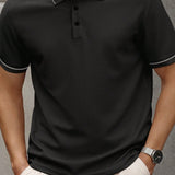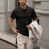 Manfinity bizformal camisa polo de manga corta con botones y cuello para hombre, con ribete de contraste, para uso casual en el trabajo y el ocio en verano