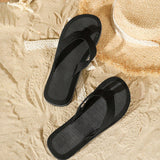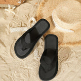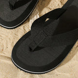 Sandalias playeras para hombres, correa de lona negra, suela plana, pantuflas casuales para la playa y exteriores, material eva verde