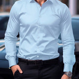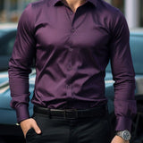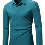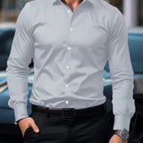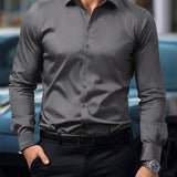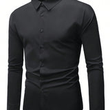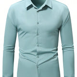 Manfinity mode camisa de hombre de manga larga casual de negocios de primavera con cuello abotonado