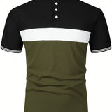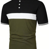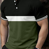 Mode camisa casual tipo polo de verano para hombres con mangas cortas y diseno de bloques de color, botones, color verde militar, adecuada para el trabajo, para esposos
