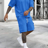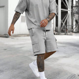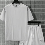 Manfinity homme conjunto de dos piezas para hombre en color solido, con camiseta de manga corta y pantalones cortos