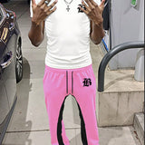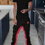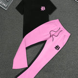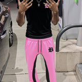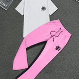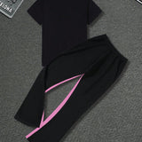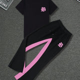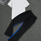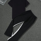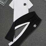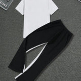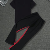 Manfinity emrg traje casual de verano para hombre con camiseta de manga corta con cuello redondo estampado y pantalones de cintura con cordon de bloques de color
