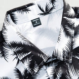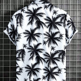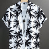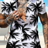 Manfinity rsrt camisa casual de verano para hombre con estampado de palmeras de coco de mangas cortas, ajuste delgado, camisa de playa grafica tropical con botones para esposo