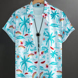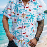 Manfinity rsrt camisa de verano casual con botones, de manga corta, cuello estampado con graficos florales, para hombres