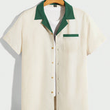 Manfinity urbanchill camisa holgada para hombre con cuello contrastante sin camiseta interior