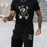 Manfinity legnd conjunto de camiseta de manga corta y pantalones cortos con estampado de oso para hombre, uso diario casual en primavera/verano