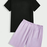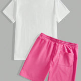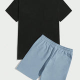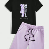 Manfinity emrg conjunto de camiseta de manga corta informal de verano para hombre con estampado de osos y letras junto con pantalones cortos tejidos solidos