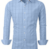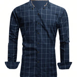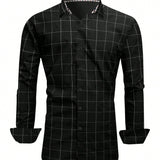 Manfinity camisa de manga larga con cuello y estampado a cuadros o grafico simple para hombre, para papa e hijo, dinero antiguo para el trabajo, papa