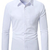 Manfinity hypemode camisa blanca clasica de manga larga y botones de corte ajustado para hombres, de moda y adecuada para trabajar y para ocasiones casuales de negocios. ideal para esposos y papas