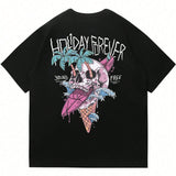 Camiseta de manga corta de verano informal para hombres con estampado de calavera y arboles de coco