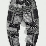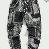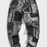 Manfinity vcay pantalones casuales tejidos de cintura con cordon para hombres con estampado de paisley, estilo de ocio para las vacaciones
