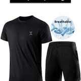 2 piezas conjunto deportivo para hombre - sudadera liviana con bolsillo y pantalones cortos con cordon para correr, baloncesto, futbol, ejercicio