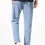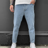 Homme jeans conicos de bolsillos inclinados lavados para hombre, ajustados y de color azul plano, largos y ligeros de tela de carga para trabajo o casual de negocios de esposo