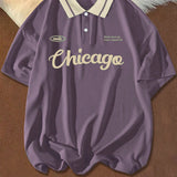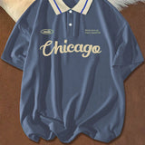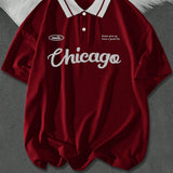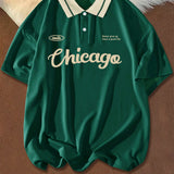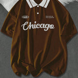 Sporsity camisa polo de manga corta con eslogan estampado de talla grande para hombre con bloques de color para el verano
