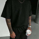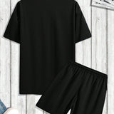 Manfinity homme conjunto de camiseta casual suelta de verano para hombre de cuello redondo liso con shorts y mangas cortas caidas