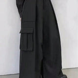Manfinity emrg pantalones para hombre de cargo casual holgados, de pierna ancha y negros con bolsillos, tamano grande, largos, sin disenos para salir
