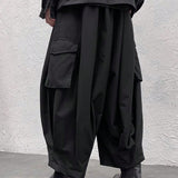 Manfinity emrg pantalones de carga negro para hombre de gran tamano con multiples bolsillos, estilo urbano de gran tamano para salir