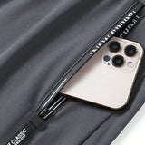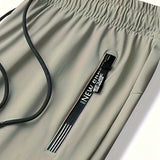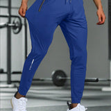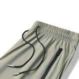 Pantalones deportivos de estilo de novio con cordon en la cintura y bolsillo con cremallera para hombres