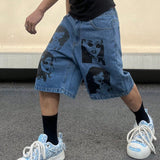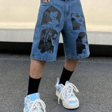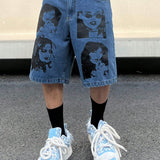 Manfinity emrg pantalones cortos de mezclilla casuales impresos de talla grande para hombre para primaveraverano