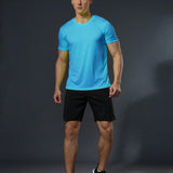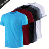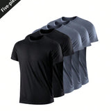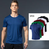Conjunto de 5 camisetas deportivas de estilo boyfriend para hombre, de secado rapido, de manga corta, para fitness, entrenamiento, ropa deportiva transpirable y para uso al aire libre