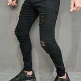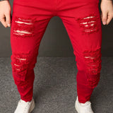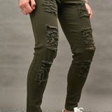 Legnd jeans de mezclilla para hombre con frotados y bolsillos para uso diario y casual
