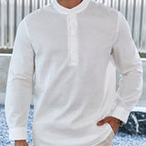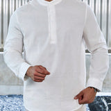 Manfinity homme camisa casual regular de manga larga con media cartera de botones, de color liso, de 100% algodon, para hombres de talla grande, para verano
