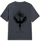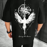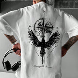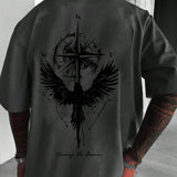 Camiseta de manga corta informal de cuello redondo con estampado de aguila para hombres, de verano