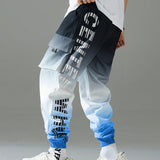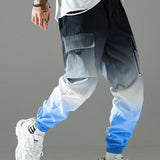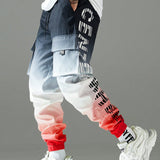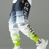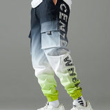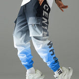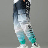 Manfinity emrg pantalones de carga jogging para hombre con estampado de letras, bolsillos largos y holgados de color azul oscuro para salir