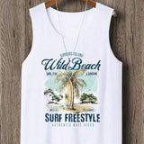 Manfinity dauomo camiseta sin mangas informal de vacaciones de verano con estampado de palmeras para hombre