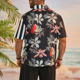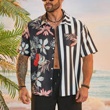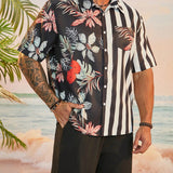 Manfinity rsrt conjunto de camisa de manga corta y pantalones cortos de impresion estilizada para vacacionar en tallas grandes para hombre