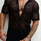 Camisa informal de manga corta para hombre con diseno floral al azar y detalles de orificios en verano