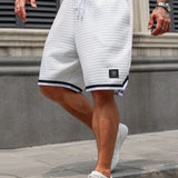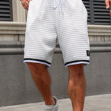 Manfinity homme pantalones cortos de hombre talla grande con cordon, color a contraste, parches y bolsillos para el verano, tiempo libre, salidas, baloncesto. ideal como regalo para marido o novio