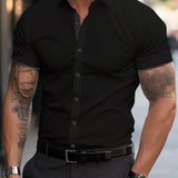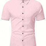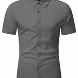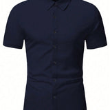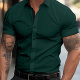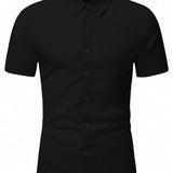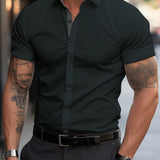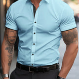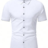 Manfinity homme camisa casual de manga corta y unicolor de verano para hombre. camisa ajustada de boton blanco lisa para trabajar y negocios diarios para esposo.