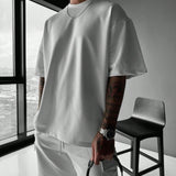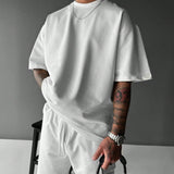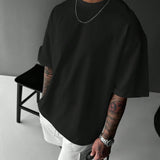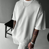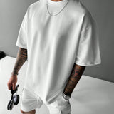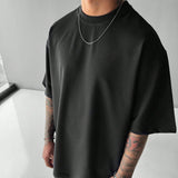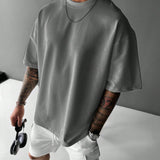 Camiseta casual de manga corta de cuello redondo solida y holgada para hombre, para uso diario en verano