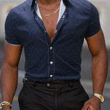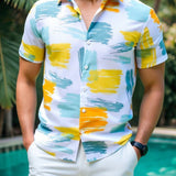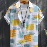 Manfinity mode camisa casual de manga corta de verano para hombres con impresion de parentesis (patron de corte al azar)