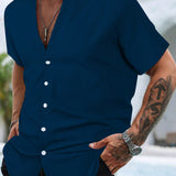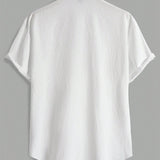 Manfinity homme camisa casual de verano para hombre con botones al frente y mangas cortas de unicolor, camisa blanca lisa de playa para esposo
