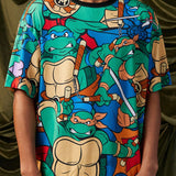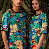Teenage mutant ninja turtles x camiseta holgada casual de 1 pieza con estampado de dibujos animados unisex para el verano