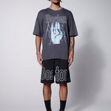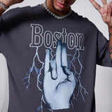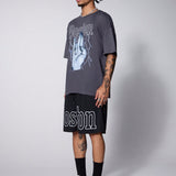 Manfinity streetrush conjunto de camiseta de manga corta con cuello redondo y pantalones cortos con cintura con cordon para hombre con estampado de letras de gesto para el verano