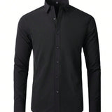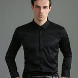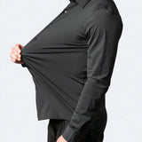 Camisa de manga larga para hombre, elastica y sin arrugas, textura de seda con tacto vertical