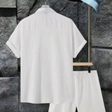 Manfinity homme conjunto de dos piezas de camisa de manga corta y pantalones cortos de unicolor simple talla grande para hombre, atuendo sencillo para salir