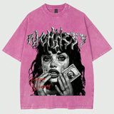 Street life camiseta desgastada y lavada vintage retro para hombres con estampado de retrato, para verano, escuela