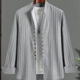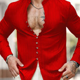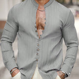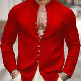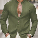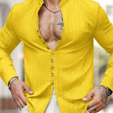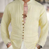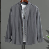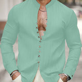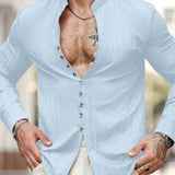 Camisa de manga larga para hombres de moda en unicolor con botones, tela de lino blanca lisa para vacaciones ocasionales