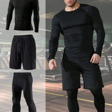 Conjunto deportivo de 3 piezas de hombre con camiseta de manga larga, mallas y shorts, de secado rapido y compresion, para gimnasio, baloncesto y running