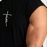 Parte superior deportiva sin mangas estilo novio para hombre, ideal para actividades al aire libre como correr, ejercicio y talla grande. ropa deportiva de secado rapido y transpirable con camiseta estampada con fe.