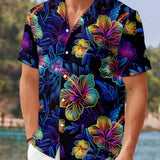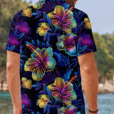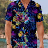 Manfinity rsrt camisa informal para hombres con estampado floral de verano, manga corta, boton grafico colorido para la playa