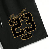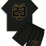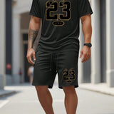 Manfinity homme conjunto de camiseta casual de manga corta con cuello redondo y pantalon corto con cordon en la cintura estampado con letras de verano para hombre, para salir, esposo