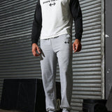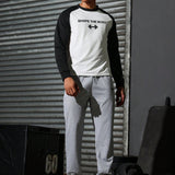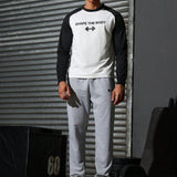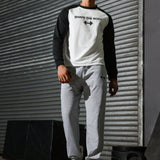 Conjunto deportivo informal de estilo novio con top de manga larga de cuello redondo con bloque de color e impresion de letras y pantalon largo de unicolor