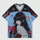 Street life camiseta de manga corta con estampado de anime para hombre, apropiada para primavera y verano, escuela
